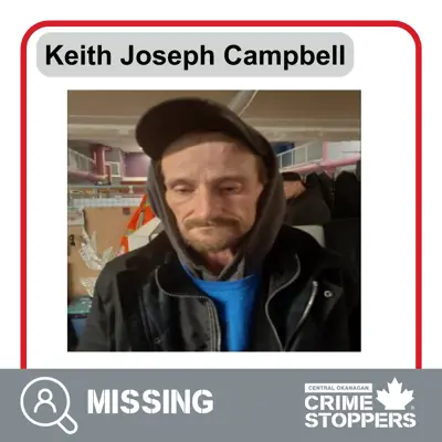Keith Joseph Campbell was last seen on October 18, 2025, in the 400-block of St. Paul Street. There is indication that he went to Alberta, but he has not been heard from since. RCMP are concerned for his health and well-being.