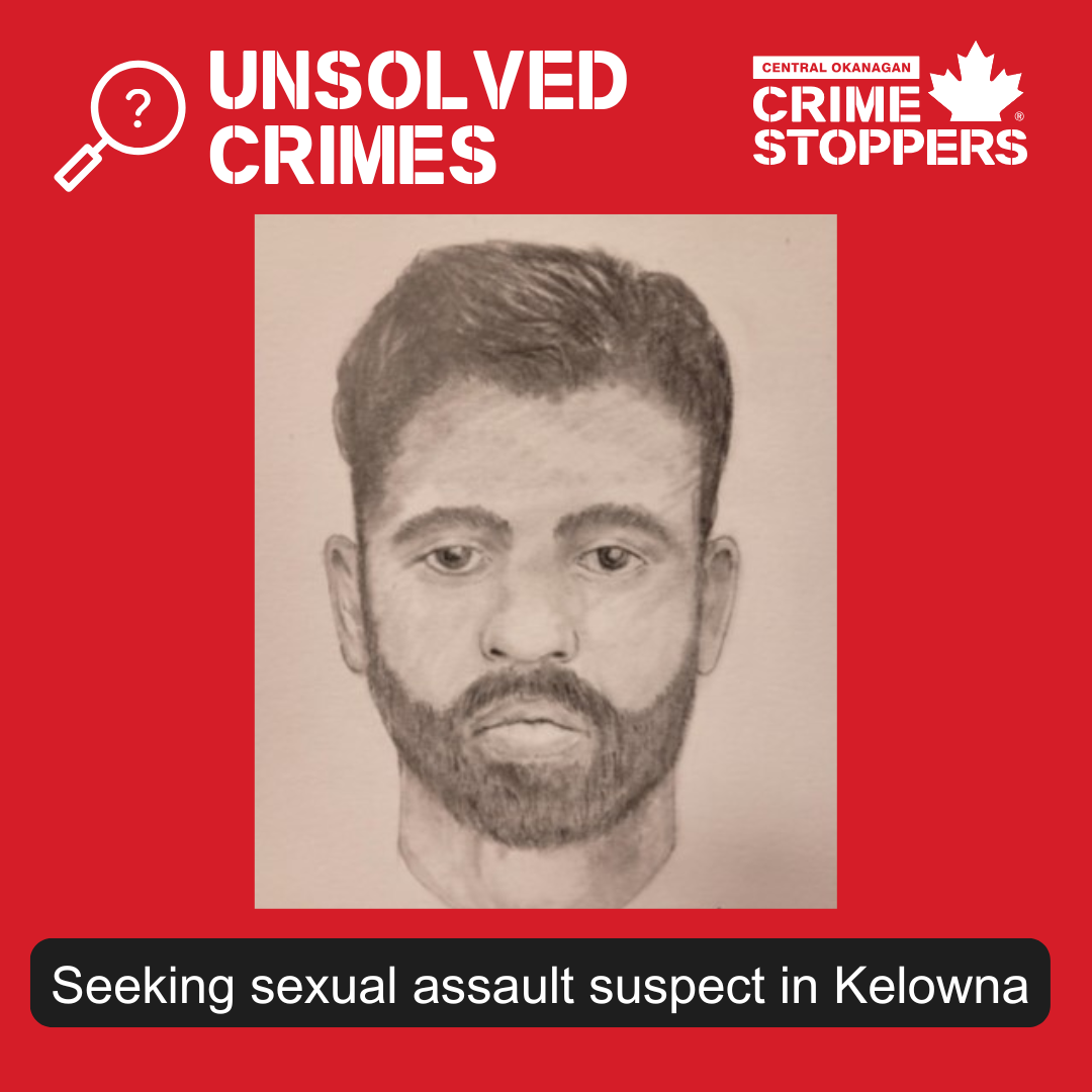 Kelowna RCMP is investigating a sexual assault that occurred Aug. 23, 2025, between 10 p.m.–12 a.m. behind the strip mall in the 300 block of Hwy 33, Rutland.