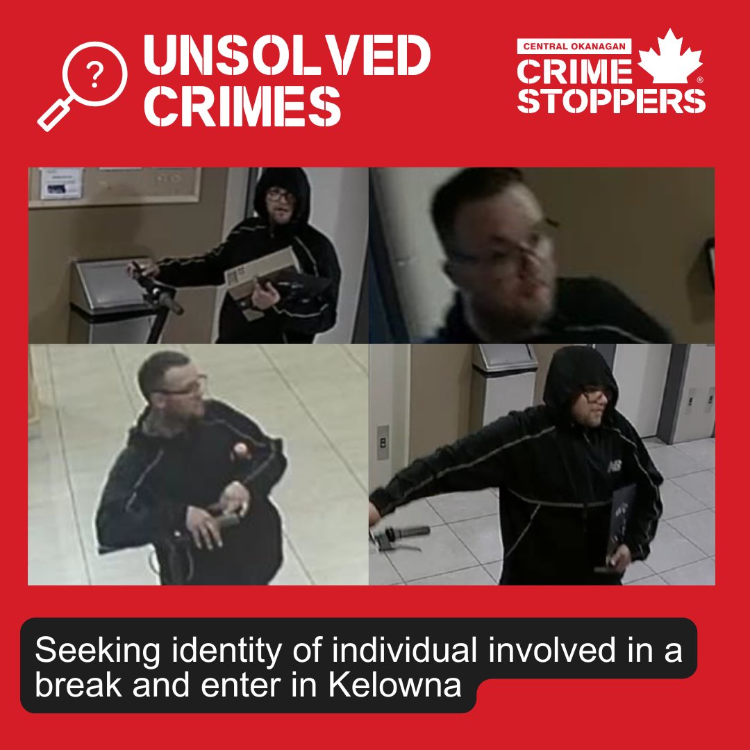 The Kelowna RCMP are seeking witnesses to identify an individual who was involved in a break and enter into an apartment building.