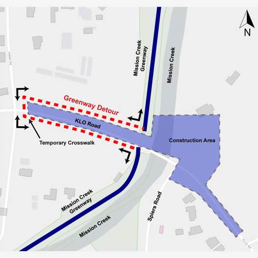 Upcoming November closures of Mission Creek Greenway during K.L.O. Bridge construction